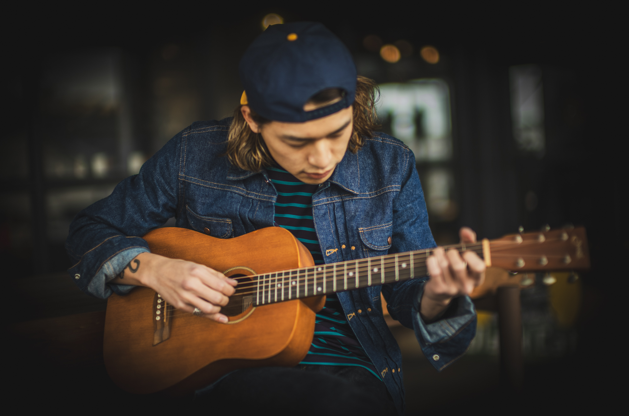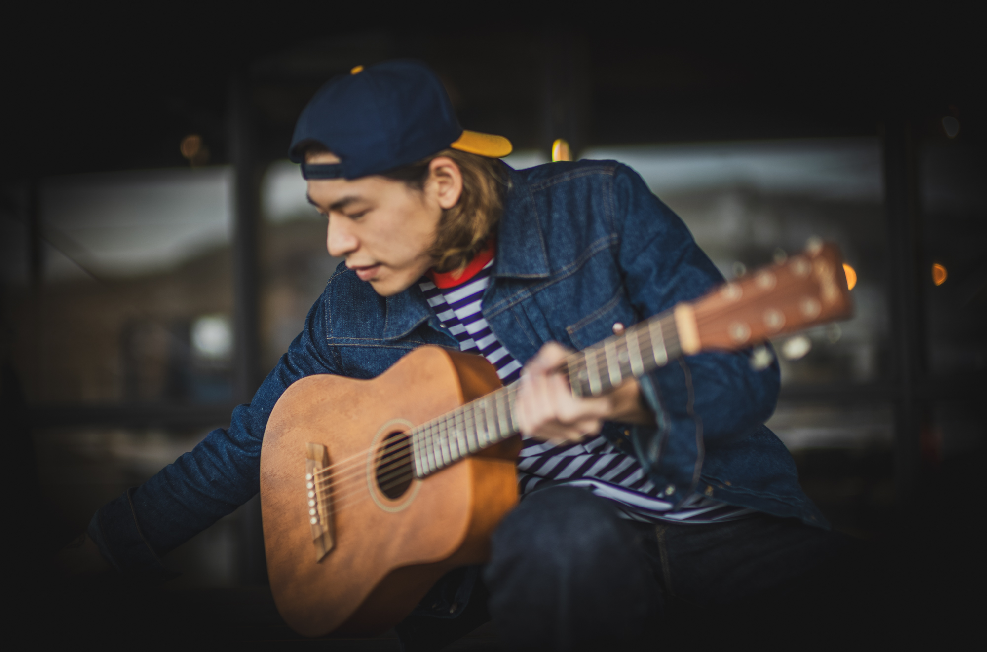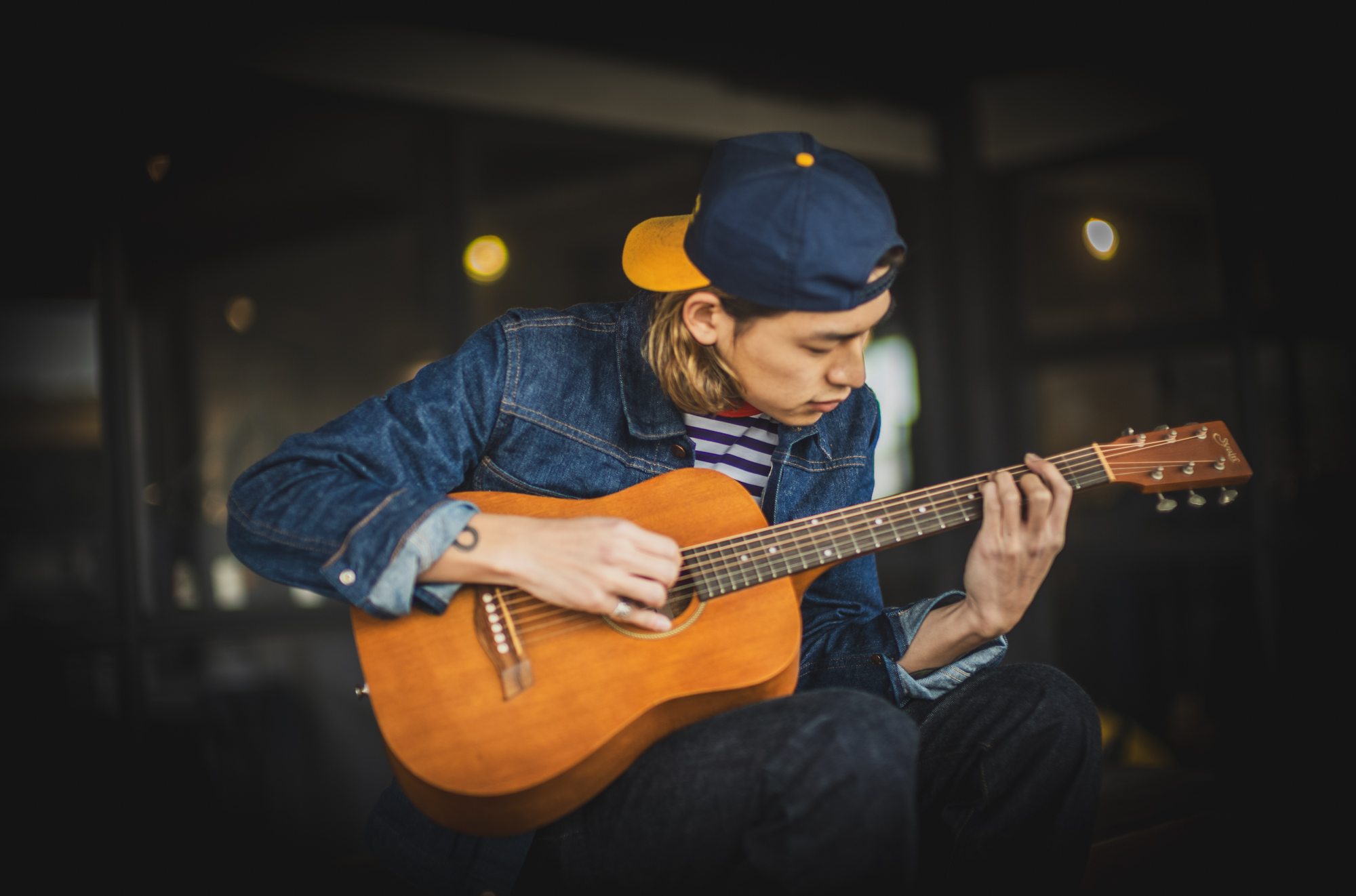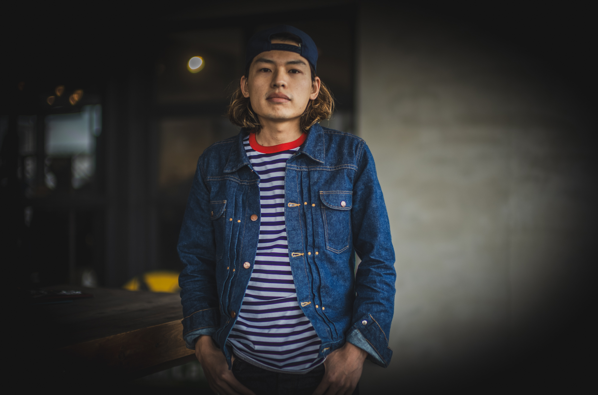 上下のデニムの色のズレが不思議と整う。