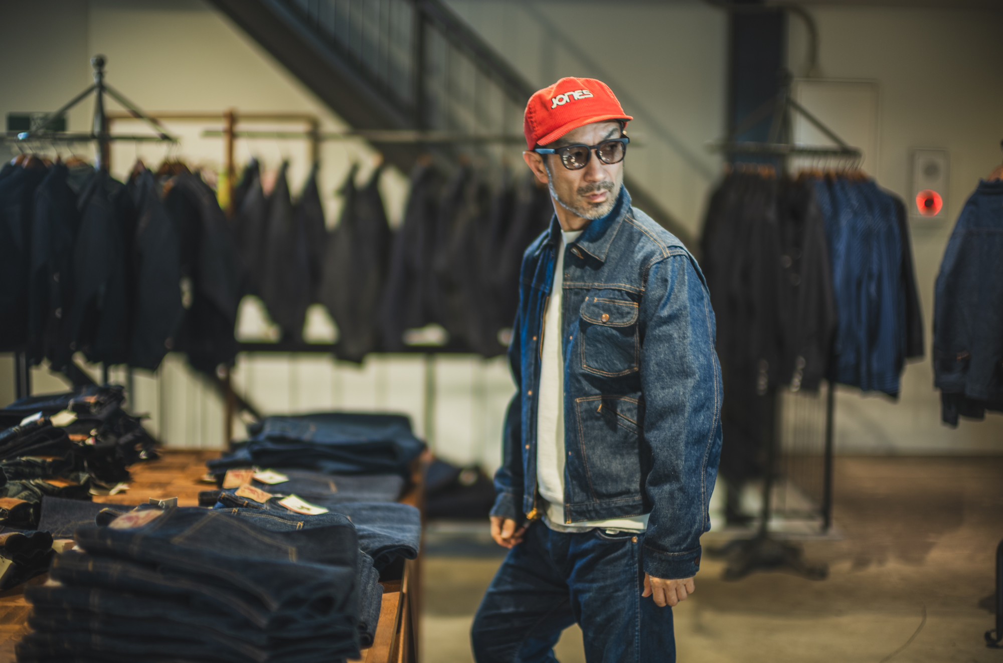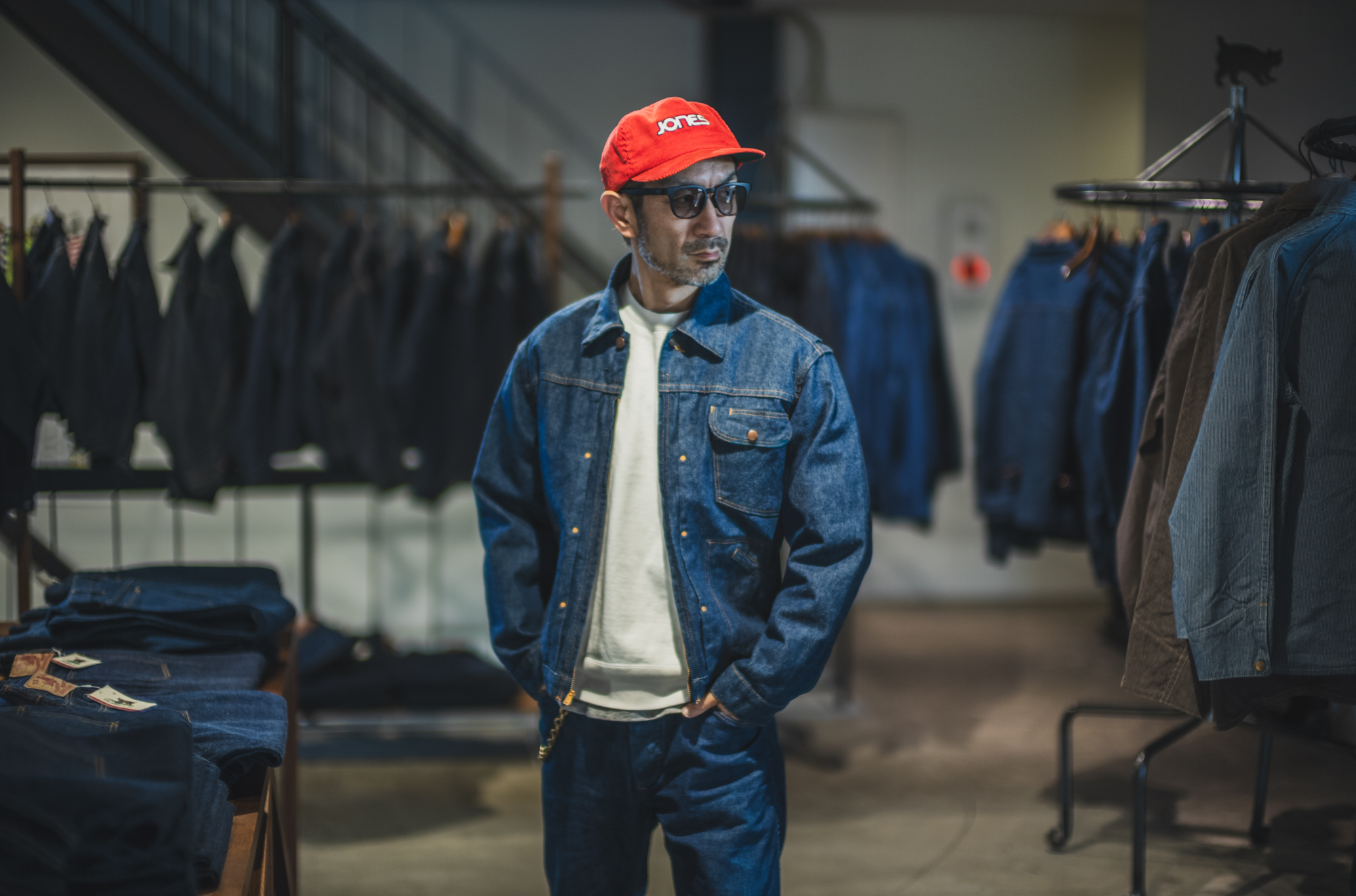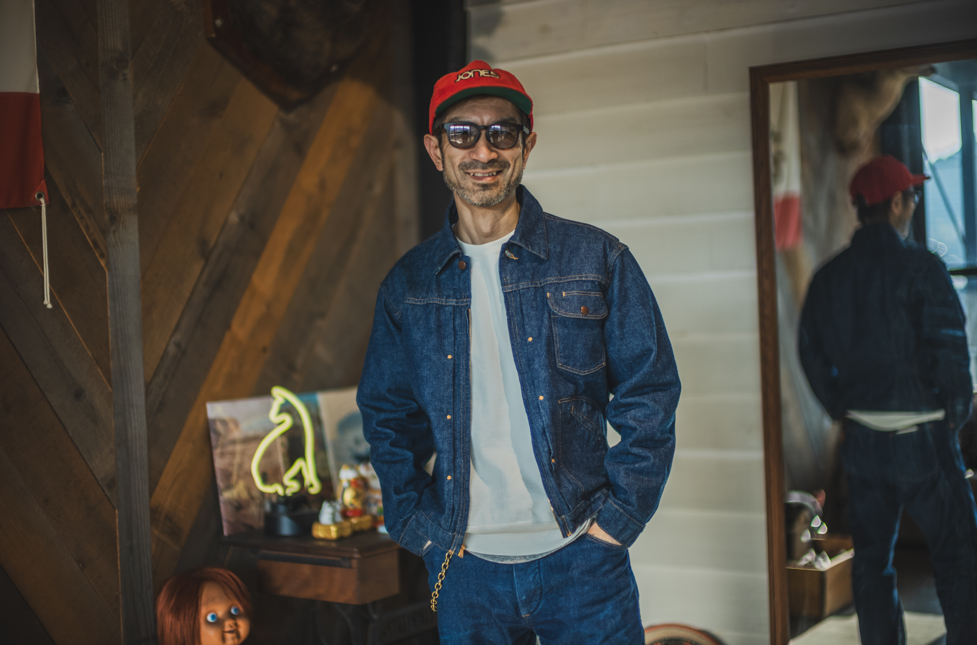 WCH Rancher’z JacketにWorking Cat Hero Jeansのセットアップに赤いCAP。